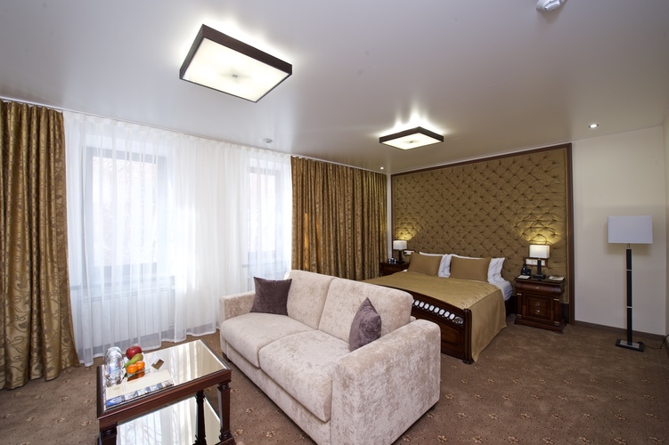 Элегантный, однокомнатный номер, площадью 32 кв.м, включает в себя: спальню с кроватью 160х200см (либо 180 х200см), рабочую зону и ванную комнату с душевой кабиной. В каждом номере к вашим услугам: плазменный телевизор (62 канала),CD-магнитола, кодовый сейф, мини-бар, кондиционер, подогрев пола, фен, радиотелефон с междугородней и международной связью, WI-FI, свежие фрукты, халат, тапочки, электрический чайник, чай и кофе, рабочий стол.